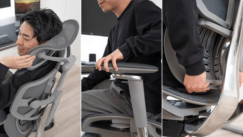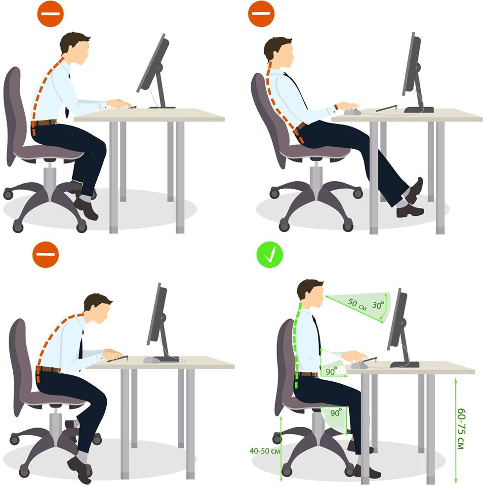 حداقل امکانات یک صندلی ارگونومیک طراحی پشتی متناسب حفظ قرارگیری درست ستون فقرات کمر است و در حالت تنظیمی باید دارای دو قابلیت تنظیم ارتفاع نشیمن و تنظیم زاویه پشتی باشد.