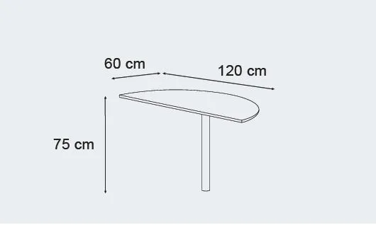 دارای ابعاد 120 سانتی متر در عرض و 60 سانتی متر در عمق و 75 سانتی متر در ارتفاع